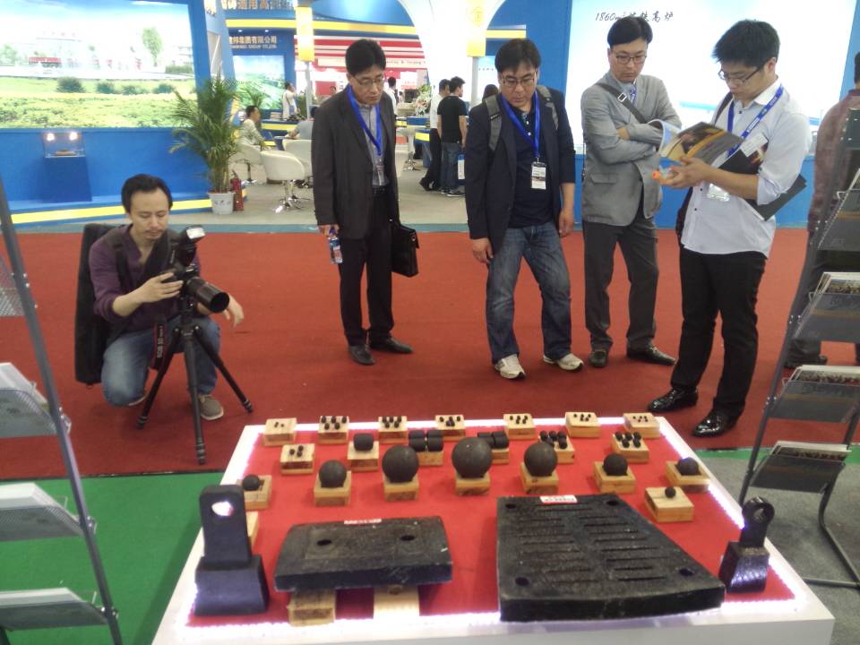 參展前期開源耐磨公司精心組織、周密籌劃,力求將此次展會的效果發揮到最大。在展品安排上,為突出開源耐磨實力突出,產品規格齊全,我們依次展出直徑10毫米到130毫米的高鉻合金鋼球、高鉻合金鋼段、合金襯板、耐磨錘頭等系列產品。并對每一種產品貼上標簽,做出說明,以更加方便客戶的瀏覽、觀看。產品分類、擺放一目了然,從產品展出效果上看無疑是眾多同行中做得最好的,無數商家駐足拍照。